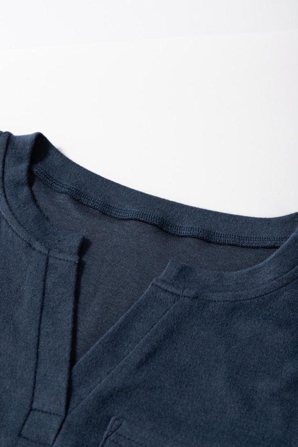 • Crafted In A Soothing Dirty Blue Hue, This Top Features A Flattering V-Neckline And Convenient Pockets For A Stylish Yet Practical Look.