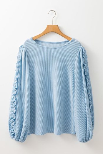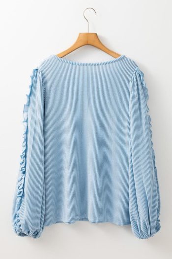 Mist Blue Corded Frill Detail Puff Sleeve Top | Women Long Sleeve Tops